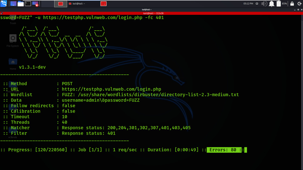 ffuf (Fuzz Faster You Fool) est un fuzzer web polyvalent : découverte de répertoires, fuzz de paramètres GET/POST, fuzz d’en-têtes (vhosts, auth), comparaison de réponses, etc. Excellente vitesse et support multiformat. GitHub+1
